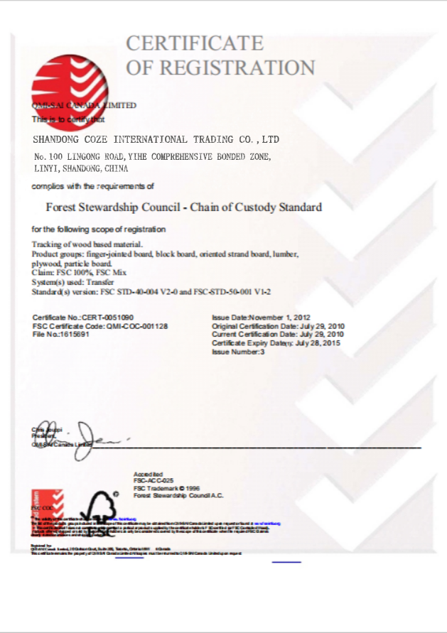 COZES® INT’L TRADECO., LTD is family business integrated industry and trade. COZE was established in 2017 and located in Linyi City, China. Owning six palnts were specialized in various of wood-based panels. including multipurpose plywood, melamine chipoboard, UV coating MDF, finger-joint board, etc. Sincerely invite domestic and globle client to visit COZE factory.